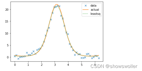 其中,p表示要估计的真实参数,x是函数的输入,y表示输入对应的数据值。最小二乘估计对应的函数为optimize.leastsq(),可以利用该函数和定义的误差函数,对真实参数进行最小二乘估计
