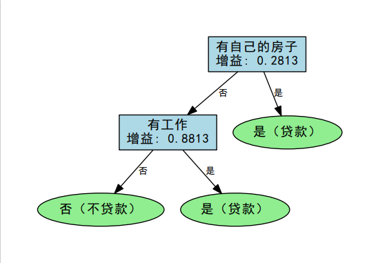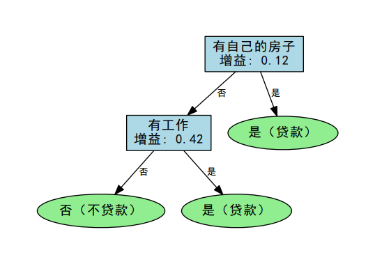 - ID3 算法中,信息增益最高的特征通常是对分类最关键的特征(如 "有自己的房子")