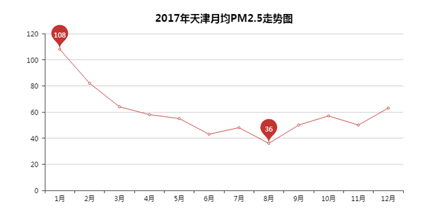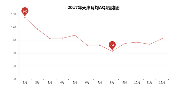 这里可以看出,2017年天津的季度AQI均值差距不是很大。