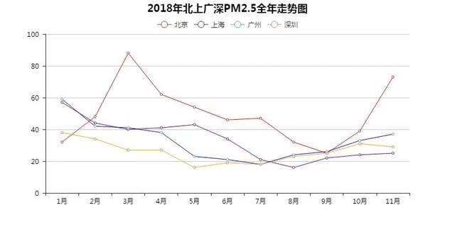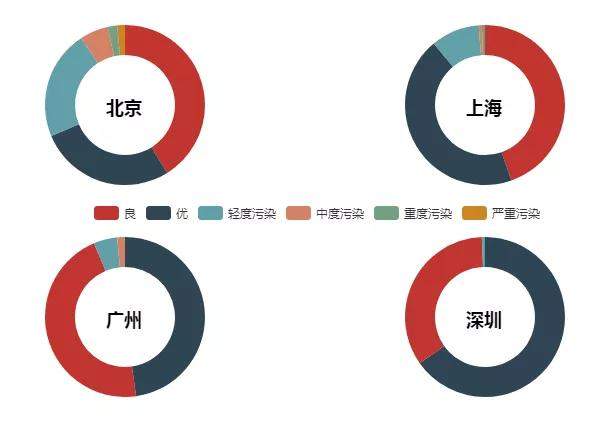 深圳几乎都是「优」和「良」,上海和广州和上面说的一样,北京的「优」已经不少了。