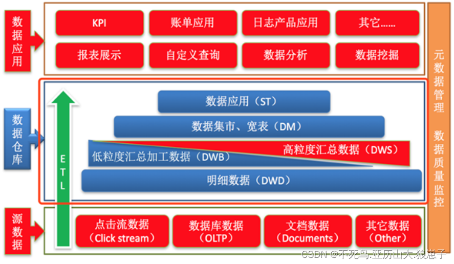 数据仓库的特点是本身不生产数据,也不最终消费数据。按照数据流入流出数仓的过程进行分层就显得水到渠成。