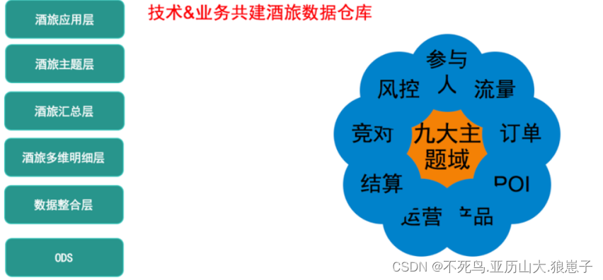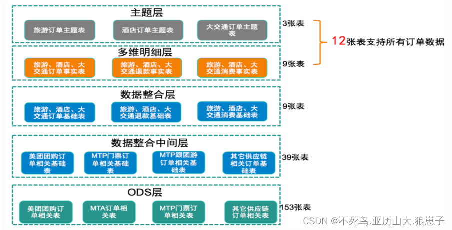 第二代数仓模型层次的建设,由建设数据集市的形式转变成了直接建设酒旅数据仓库,成为了酒旅自身业务系统数据的唯一加工者。