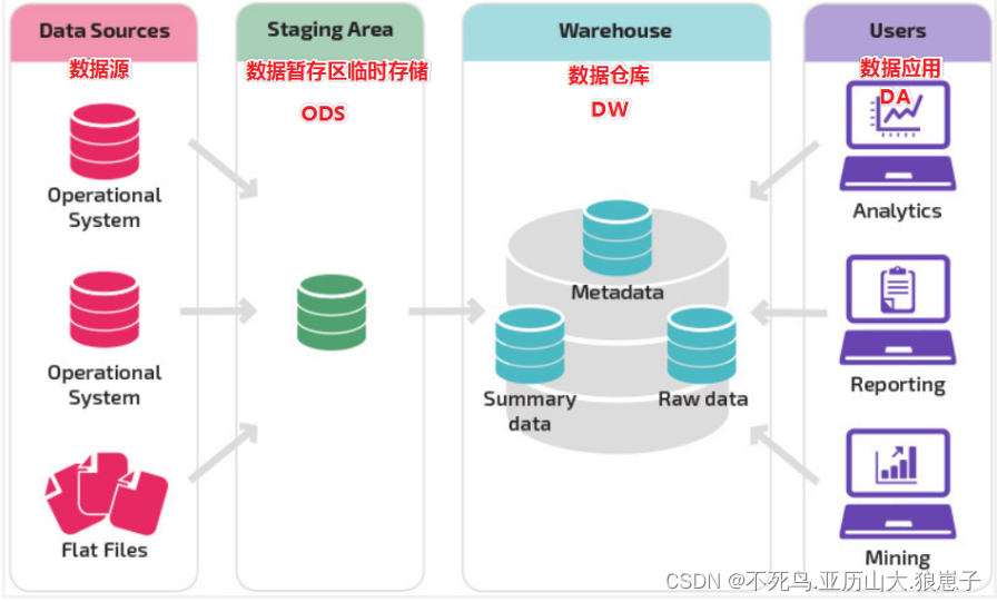 数据仓库本身并不“生产”任何数据,其数据来源于不同外部系统;同时数据仓库自身也不需要“消费”任何的数据,其结果开放给各个外部应用使用,这也是为什么叫“仓库”,而不叫“工厂”的原因。
