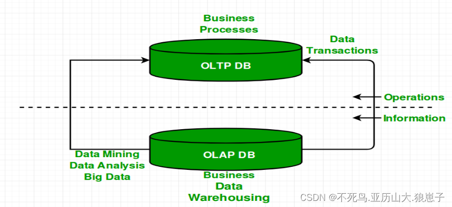 操作型处理,叫联机事务处理OLTP(On-Line Transaction Processing),主要目标是做数据处理,它是针对具体业务在数据库联机的日常操作,通常对少数记录进行查询、修改。用户较为关心操作的响应时间、数据的安全性、完整性和并发支持的用户数等问题。传统的关系型数据库系统作为数据管理的主要手段,主要用于操作型处理。