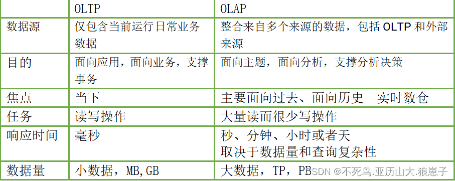 因此数据仓库和数据库的区别就很好掌握了。但是有几点需要着重强调:
