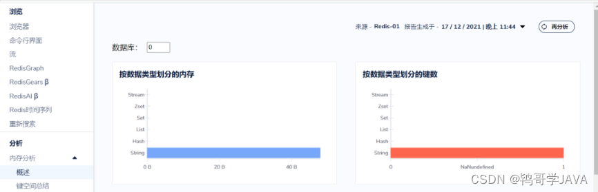 4)还可以在界面上对 Redis 使用的内存进行分析: