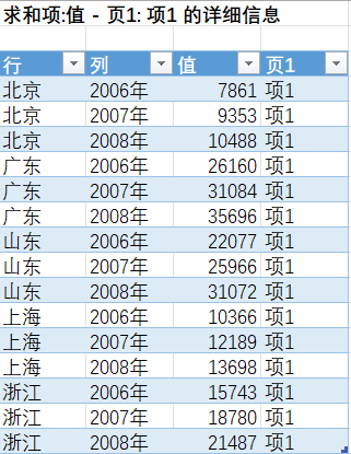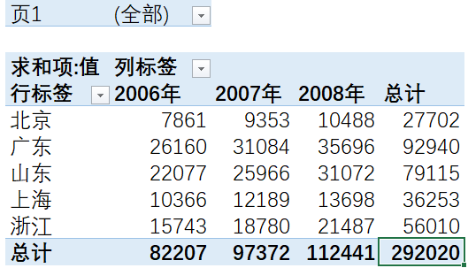 ALT+D再按P-多重合并计算区域-创建单页字段-选定表格区域-现有工作表,生成数据透视表,双击对角线单元格292020,弹出详细信息。