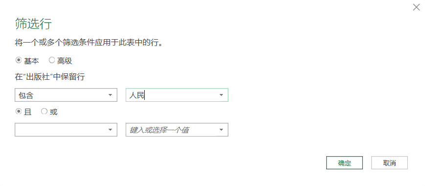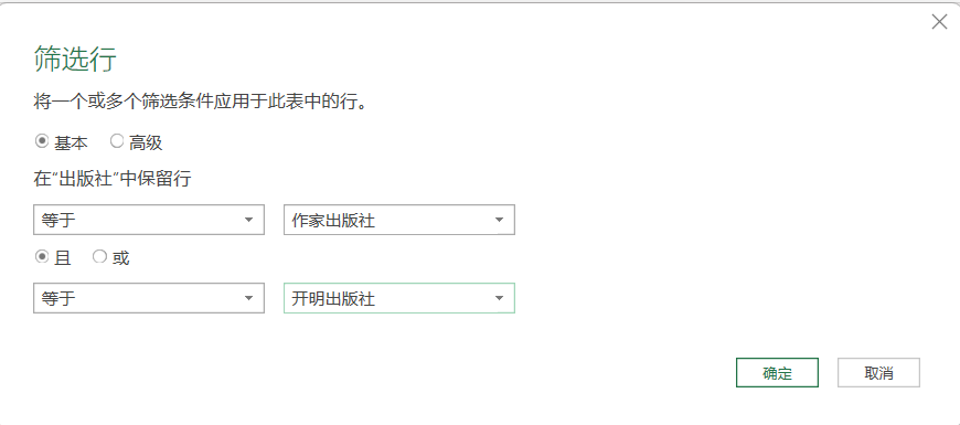 PowerQuery:出版社筛选按钮-文本筛选器-等于。
