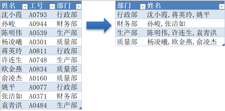 第二步:=TEXTJOIN(",",TRUE,FILTER(名单[姓名],名单[部门]=E7))
