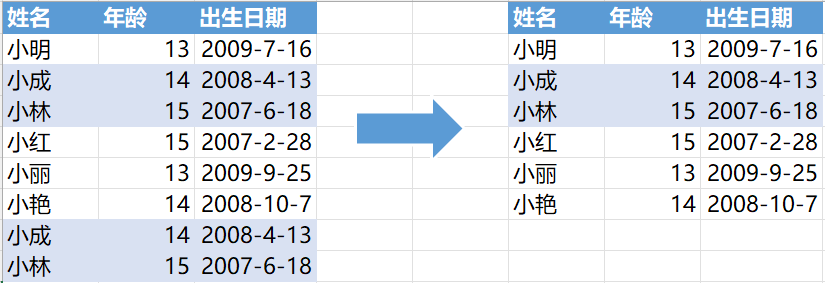 重复数据处理,就是将数据中重复、多余的部分删除,以保证数据的唯一性,也称数据去重。