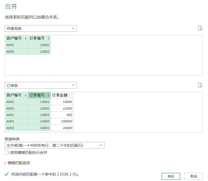 合并查询-将查询合并为新查询-按住Ctrl选中两个字段