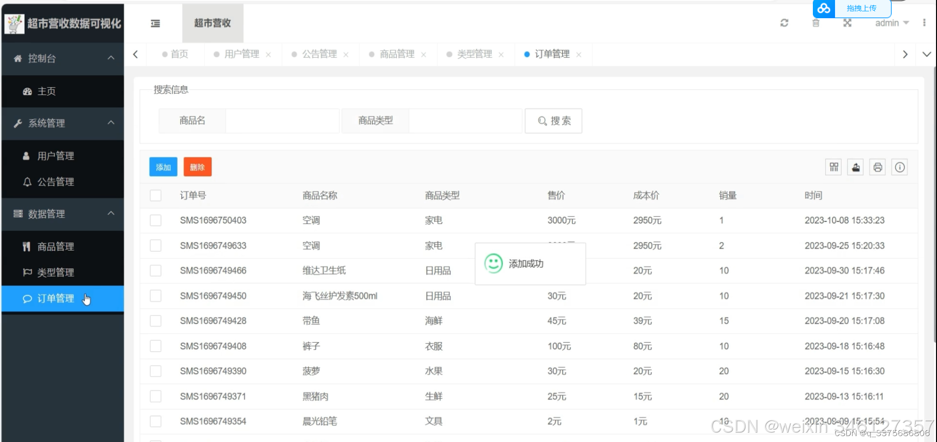 Python语言、Flask框架、MySQL数据库、Echarts可视化、Html商品销售营收数据实时大屏分析 订单管理本文针对目前商品销售营业中存在的现象开发设计了一种炫酷动效、丰富色彩、视觉冲击的基于大屏的超市营收数据可视化系统,大屏在观感上直接给人留下震撼印象,便于营造某些独特氛围、打造仪式感。系统对于使用或者要求不高,大家熟悉的天猫双11类大屏就是利用此特点,打造了热烈、狂欢的节日氛围,原