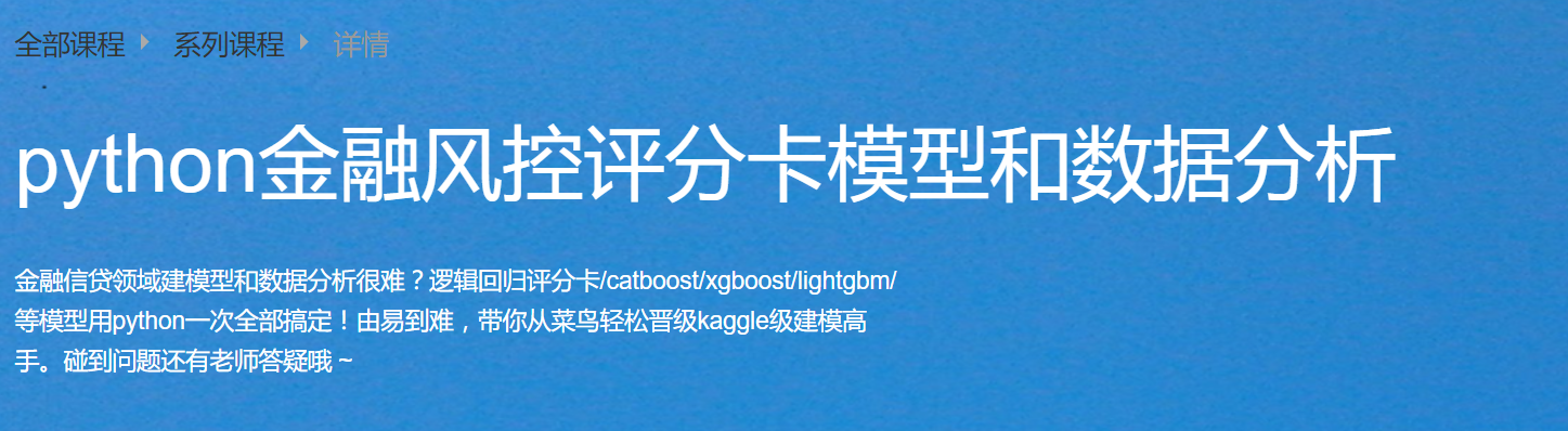 《python风控建模实战lendingClub》此课程是针对集成树模型,包括catboost,lightgbm,xgboost。这两个课程算法原理是不同的。