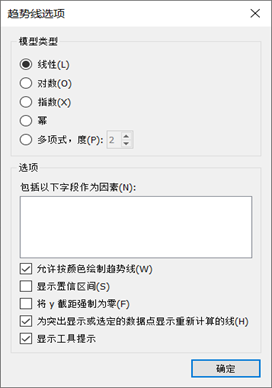 方法2:拖放“分析”窗口中的“趋势线”到右侧视图中,可以选择构建模型的类型,有线性、对数、指数、多项式、幂等5类。
