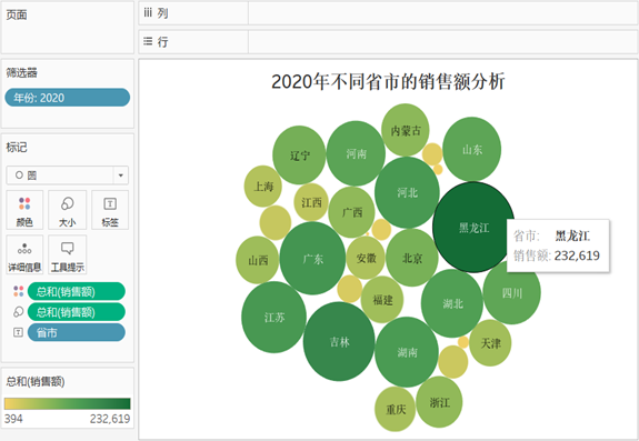 例如,要创建一个不同省市销售额大小的气泡图,具体步骤如下: