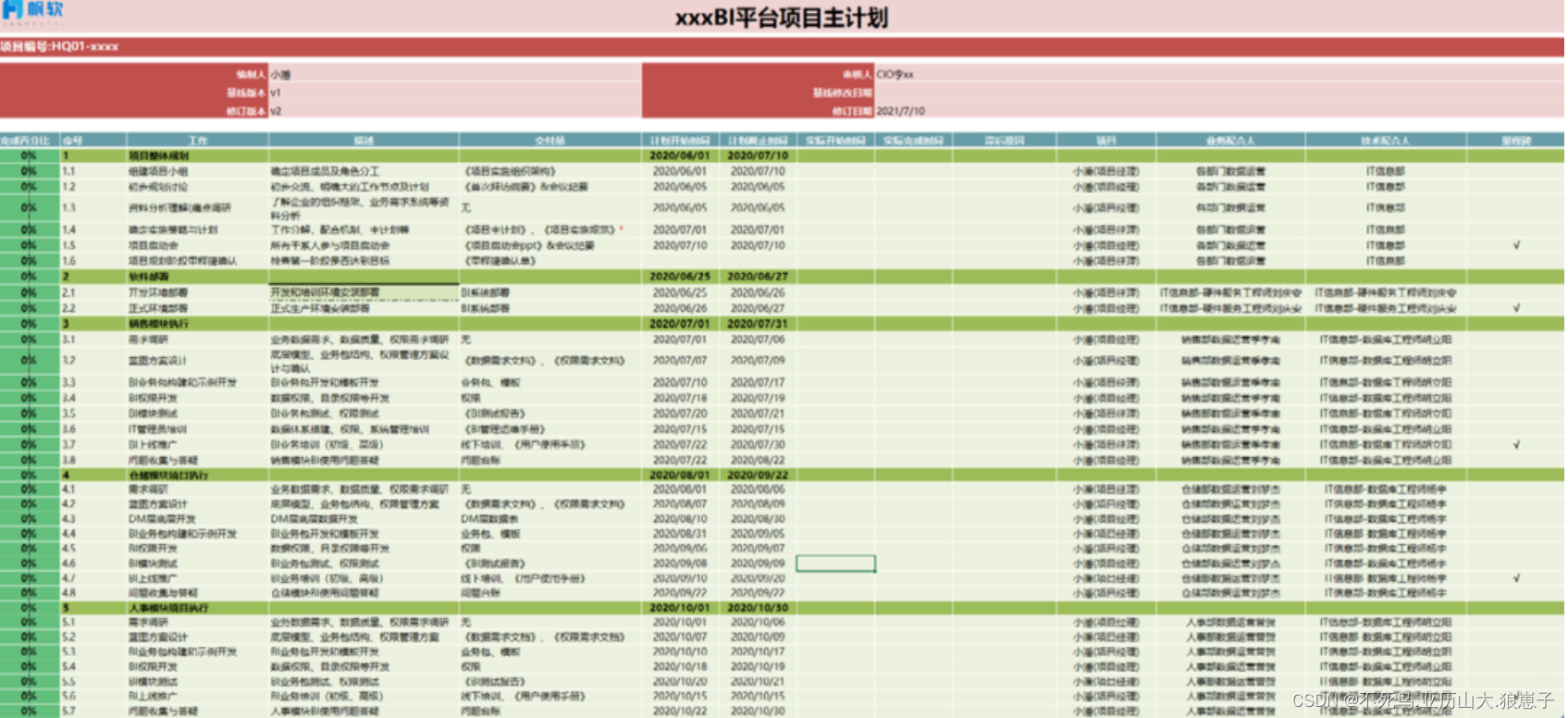 怎么制定项目计划表呢?三步走:一、了解项目的实施环境,二、按照节点拆分现有的项目,三,按照拆分好的任务,列出具体的内容、完成时间节点、负责人和配合人等,形成最终的项目计划表。