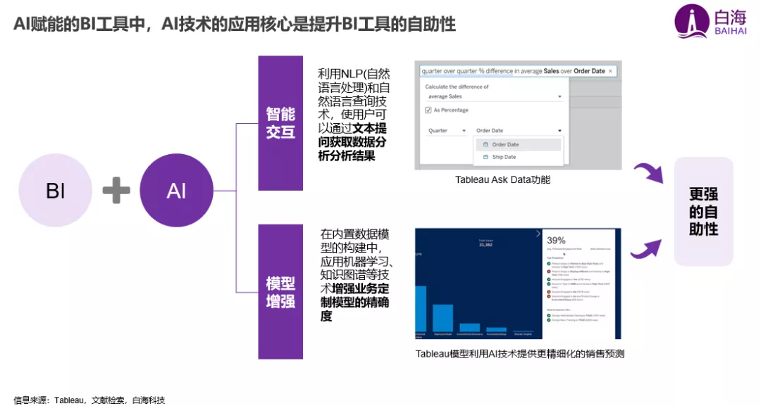 随着 AI 技术加持成为 BI 工具发展的主要趋势,也由此带来的另一个需要澄清的问题:AI 赋能的 BI 是什么?
