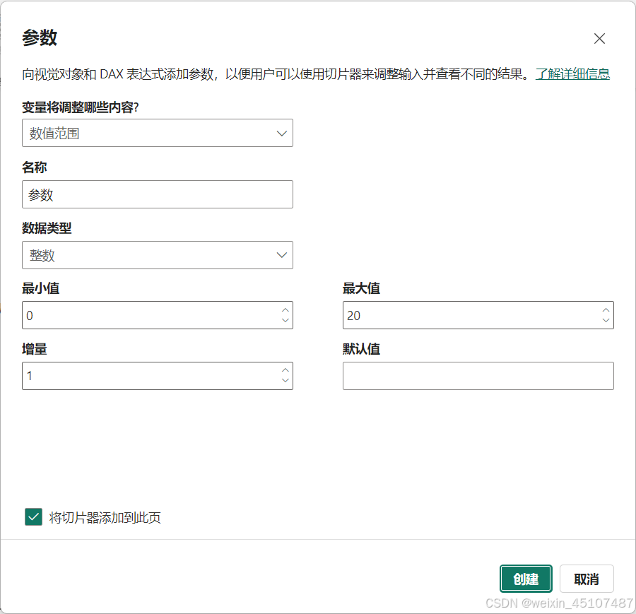 3、如何获取参数:新建度量值代码: