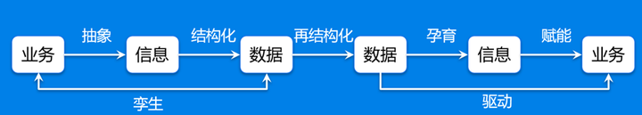 数据模型的逆向工程挑战:数据库表的建模是一个业务->信息->数据的过程,这个也是业务管理信息化的结果,从数据这条线看,业务管理的信息化(OLTP)就是沉淀了大量的数据。而我们做数据分析(OLAP)则是逆向的,就是将OLTP沉淀的数据先信息化(指标化),再基于指标业务化(洞察与分析)